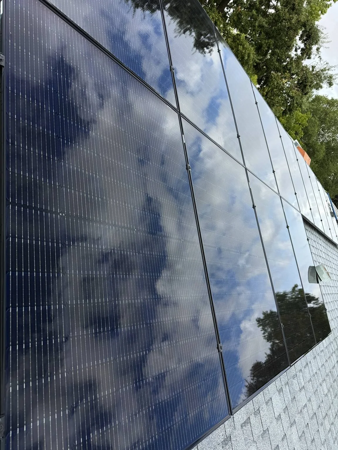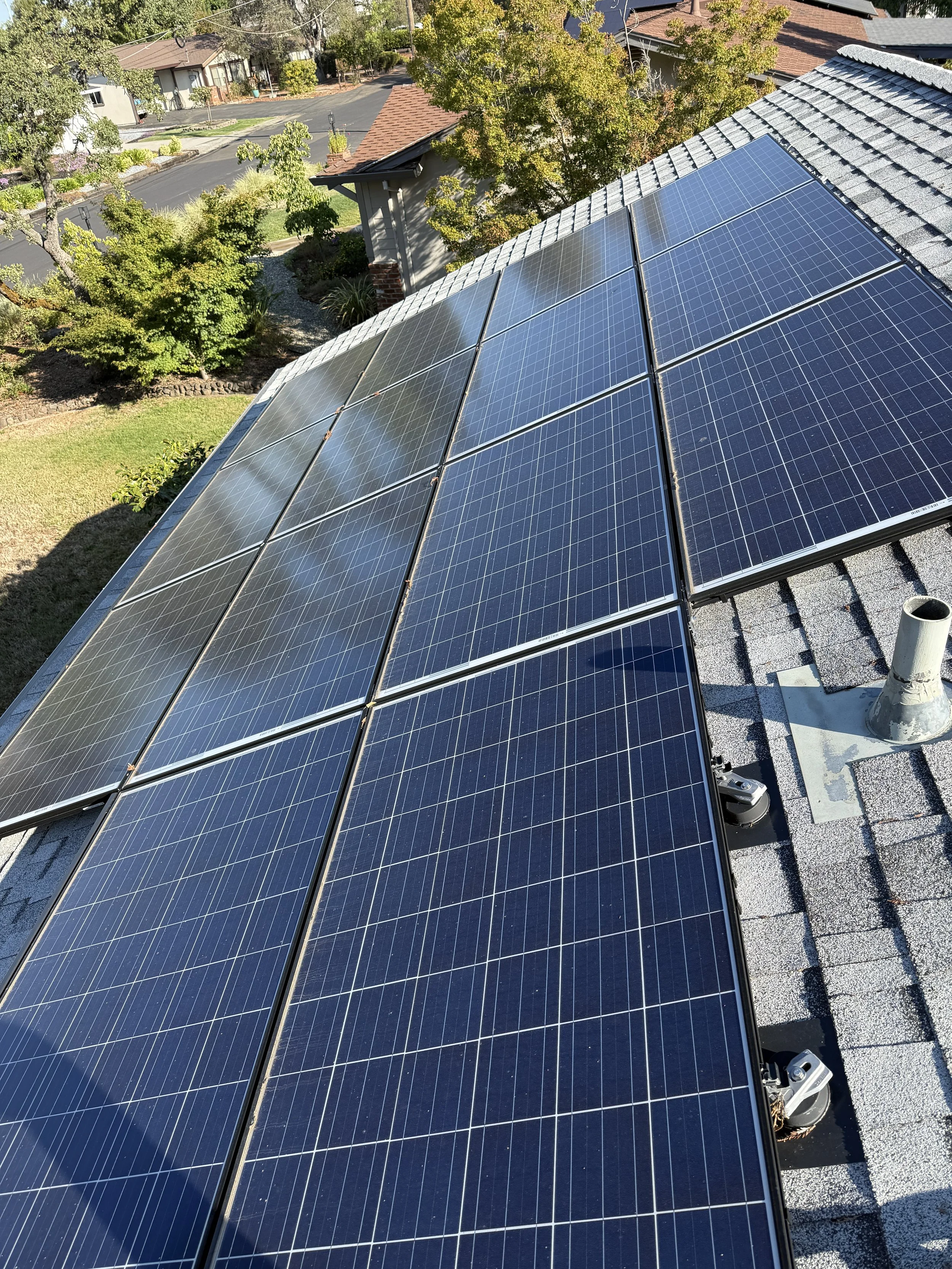 Unlike many companies that use high-pressure washers or household cleaners, our system uses professional-grade, solar-safe equipment that leaves a spotless, mineral-free finish—protecting your panels and your roof.